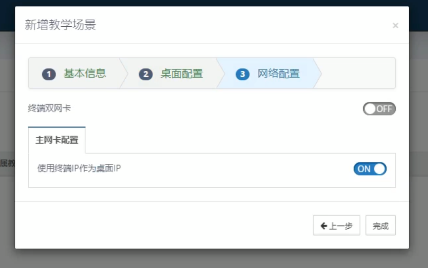 5.网络配置默认使用终端IP作为桌面IP即可,点击完成