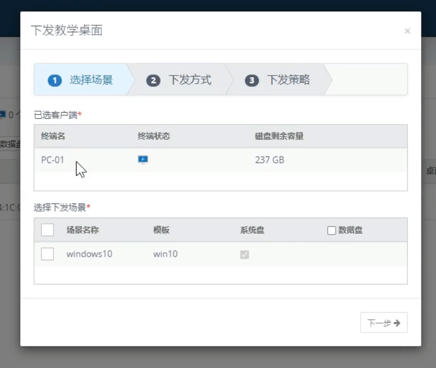 2.勾选需要下发桌面的终端,开机进入维护模式