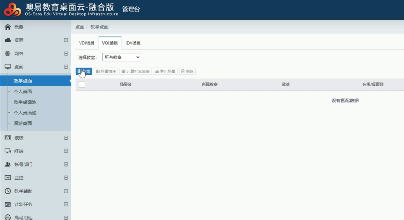 1.登录管理平台,在菜单栏中点击桌面,选择教学桌面,点击新增