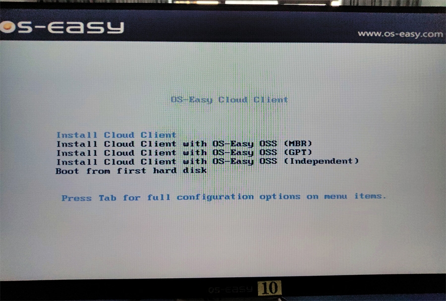 8.把U盘插到终端盒子上,然后开机按F12,选择你的U盘,会进入到以下界面,选择第一项进入,即可自动安装,等待自动安装完成后,点击重启。