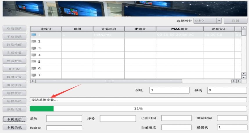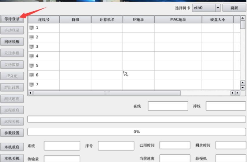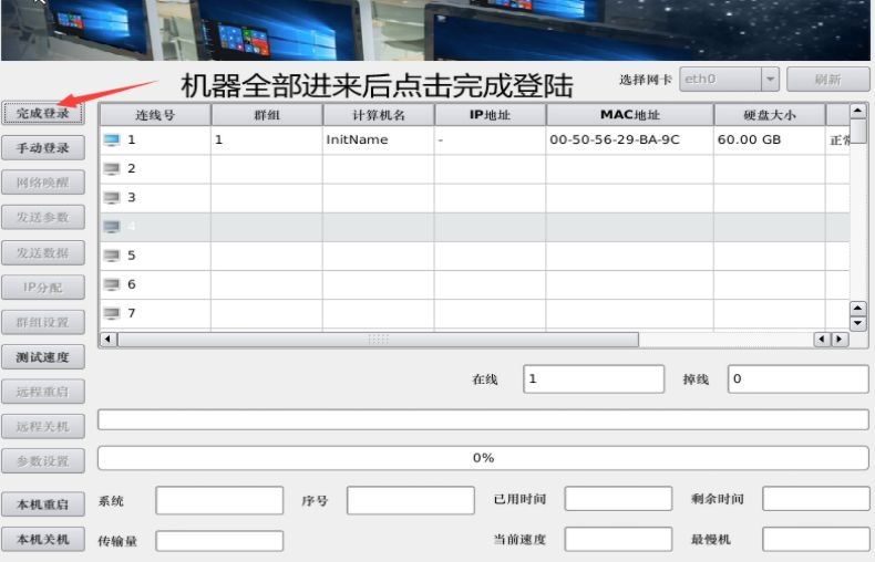 ④当所有机器都进来后,点击完成登陆,之后再开机使用pxe启动的机器无法加入本次数据传输