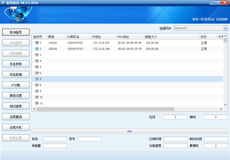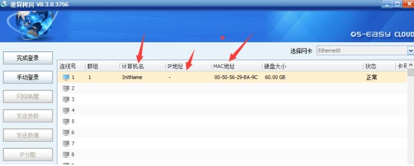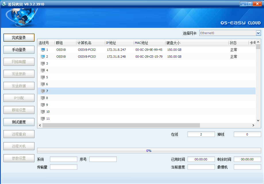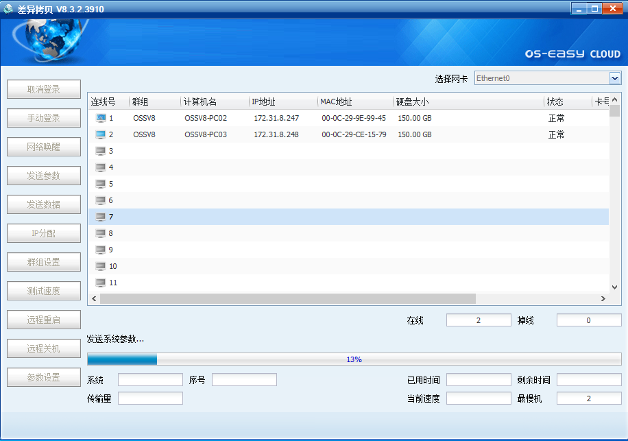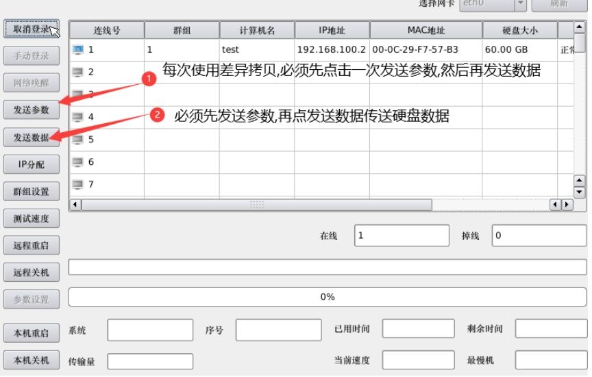 ⑤数据传输:需要批量分配计算机名或IP地址的,有专门文档编写,本文不过多讲解。每次使用差异拷贝的时候,必须先点发送参数,把oss底层的信息和分区信息等传给其他电脑,之后再使用发送数据功能