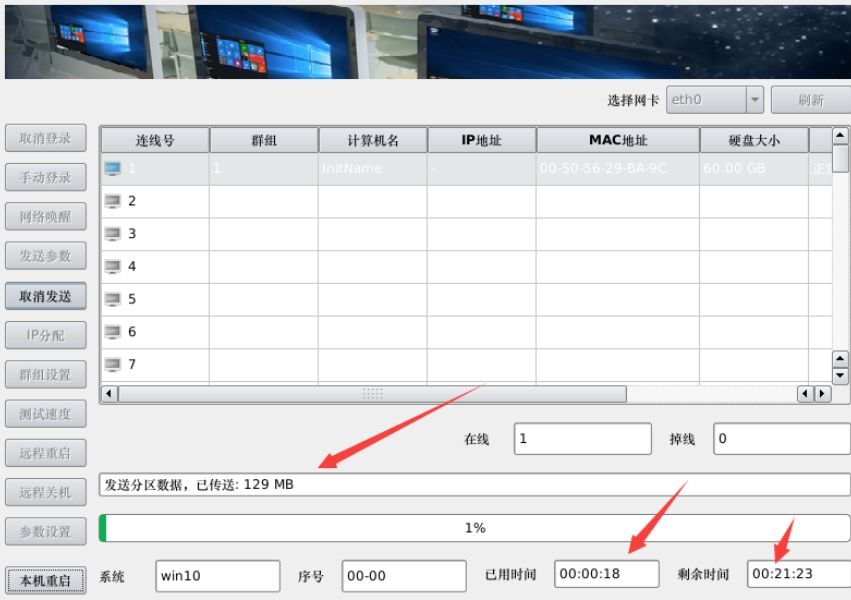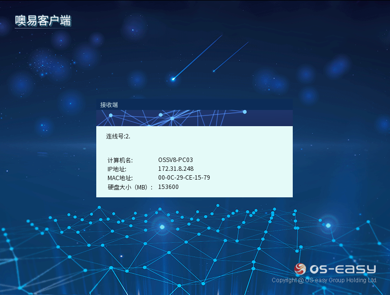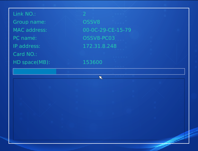 ②机房内其他机器开机启动,会自动连上述所讲的差异拷贝样机。机房内所有接收端状态连上样机时的状态如下两图:
