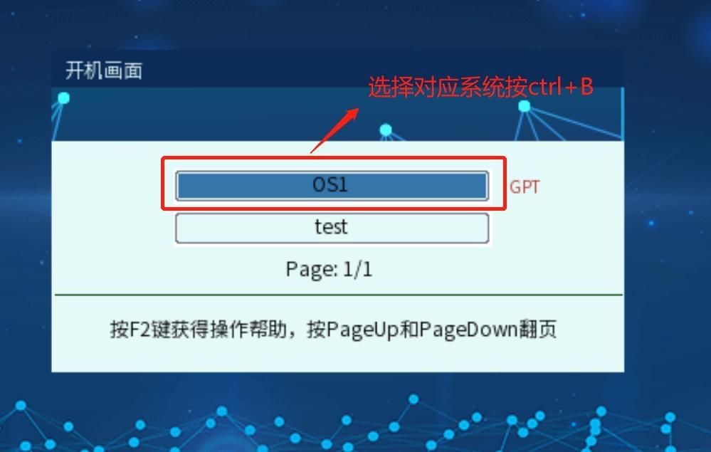 方法二: 如果没有以总管模式进入系统,而是直接按Enter进入安装了需要的软件后,想要永久写入保存进去的话,您可以重启在底层“选单界面”,按上下键将光标移到对应的系统上,按Ctrl B(永久写入模式),如下图,也可以保存上一次的操作数据,永久的保留在硬盘上。