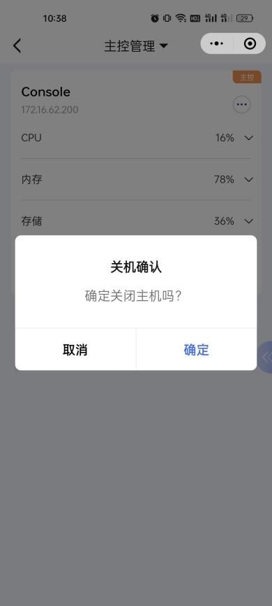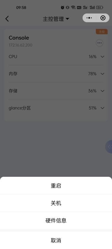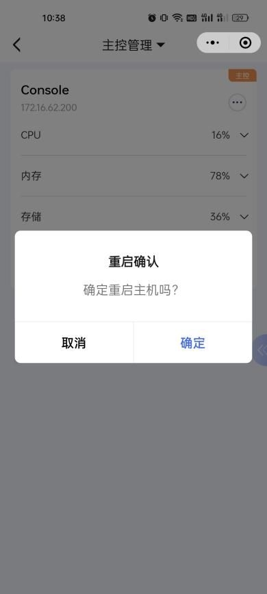2、对主控服务器进行重启、关机操作;