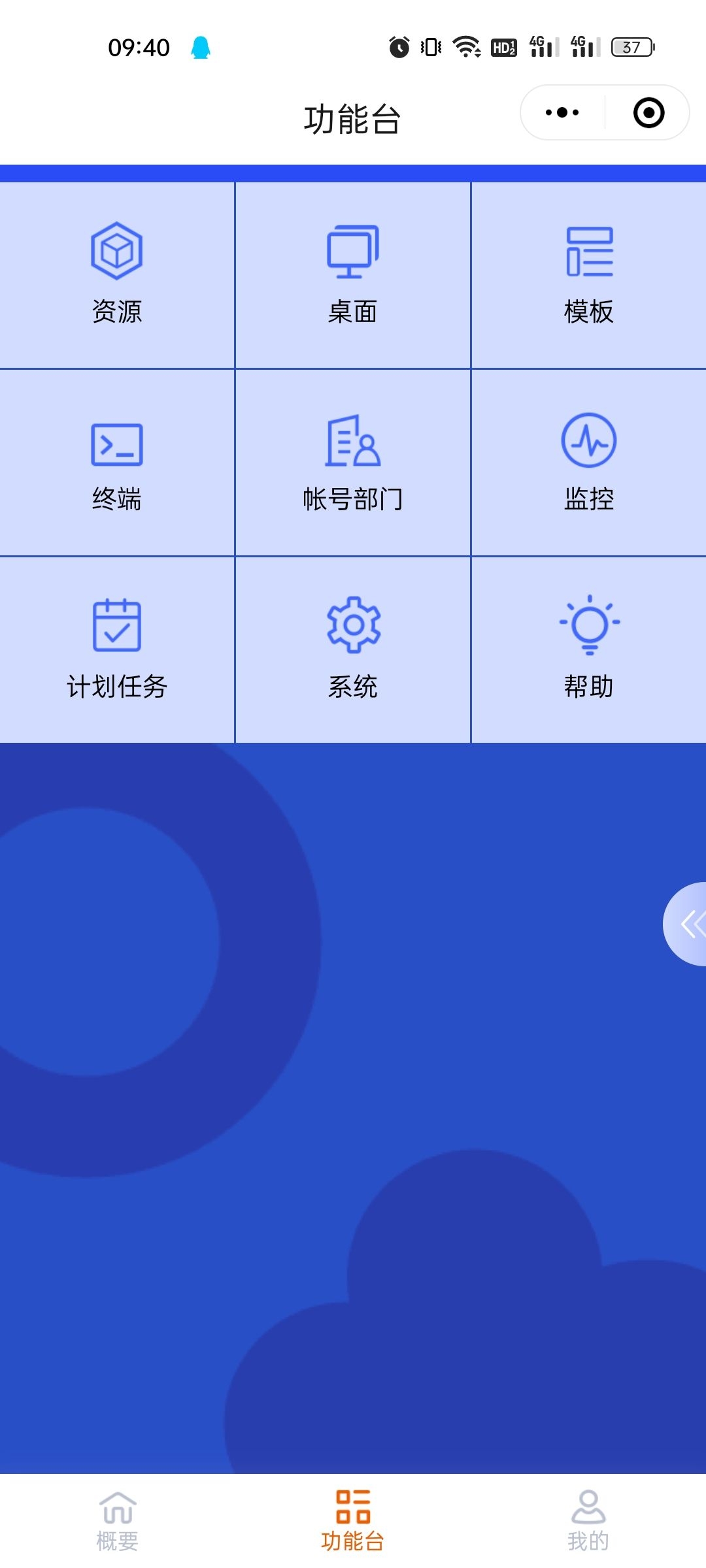 1、进入小程序后,点击『功能台』→【资源】界面,点击顶部切换【资源池管理】界面;