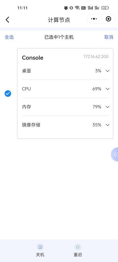 3、点击【 】→【批量操作】,进入【批量操作】页面,可进行【重启】、【关机】等操作;