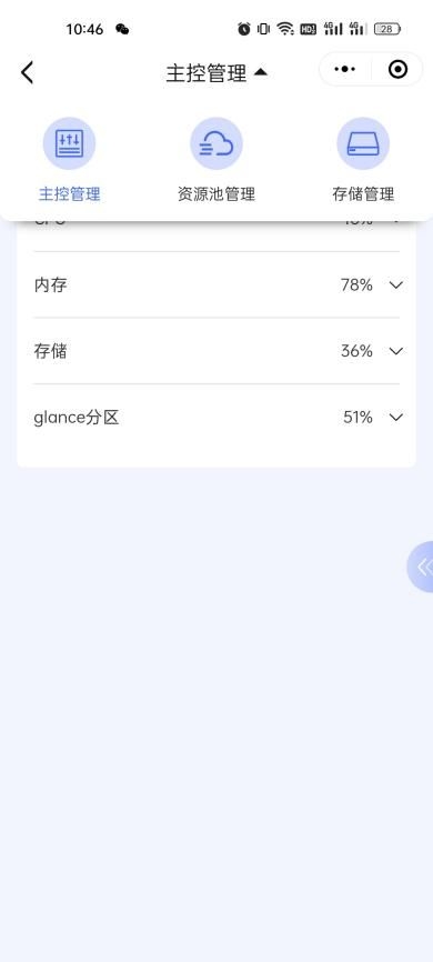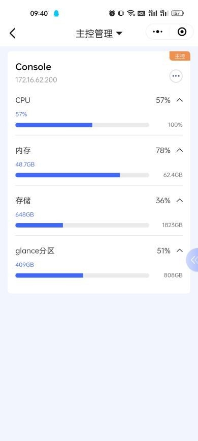 1、查看主控服务器的CPU、内存、存储、glance分区使用详情;