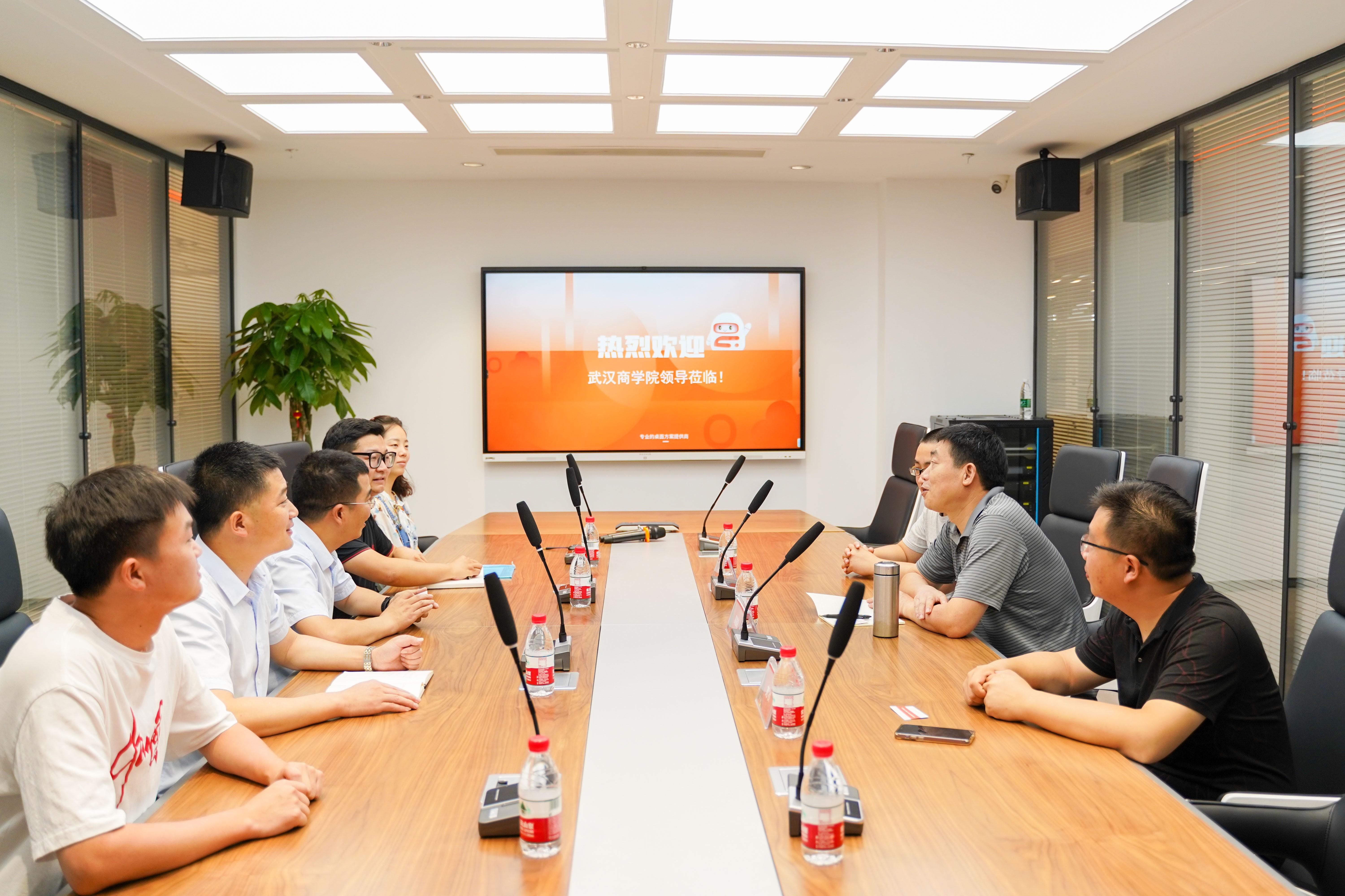 为贯彻落实党中央、国务院关于高校毕业生就业工作的决策部署,积极响应全国高校书记、校长访企拓岗促就业专项行动,拓展毕业生就业渠道,提高就业质量,6月10日,武汉商学院信息工程学院党委书记高福海一行三人赴武汉噢易云计算股份有限公司调研交流。噢易云大区总监张凯、销售管理中心总监郑红发等领导热情接待并参与此次调研交流,双方就“访企拓岗促就业”专项活动展开深度讨论与沟通,共话校企合作发展。