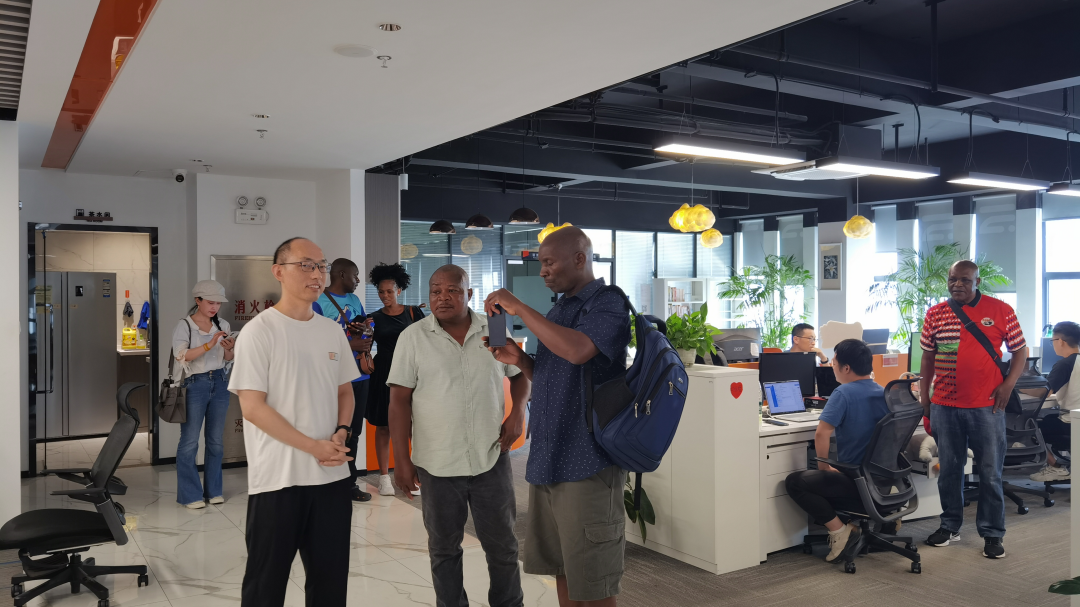 访华团重点参观了噢易云总部展厅,在沉浸式展厅中体验智慧教育、数字政务、智慧医疗等多个场景的革新实践,感受桌面云的神奇力量。从长江之滨到彩虹之国,访华团们在噢易云研发中心和工程师面对面交流,了解一行行代码从产品端走向市场端的运作模式,感受科技发展带来的巨大便利,共践教育信息化未来。当了解到噢易教育桌面云产品在中国2000 所高校中应用,再看到噢易教育桌面云产品在非洲落地,一个个鲜活的教育信息化实践为中非教育合作注入数字时代注解。