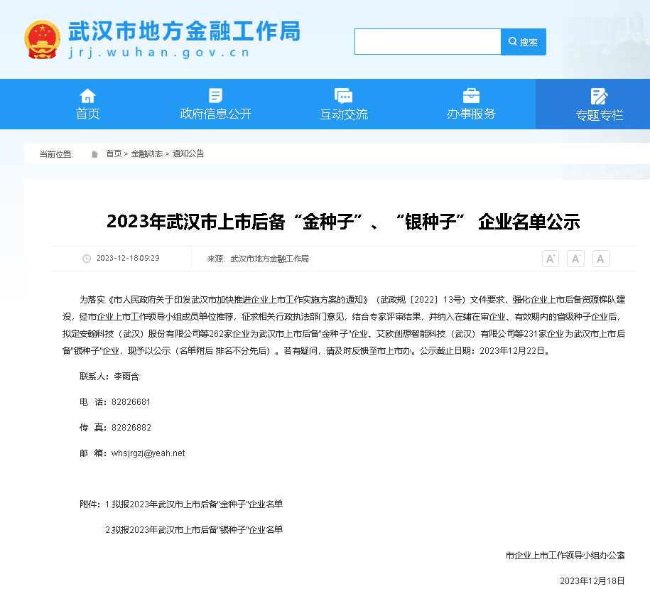 近日,武汉市地方金融工作局公示了2023年武汉市后备“金种子”名单,武汉 噢易云计算股份有限公司作为湖北本土最大的云计算企业,凭借“高意愿、快发展、强科技”的企业特性成功入选2023年武汉市上市后备“金种子”企业名单。