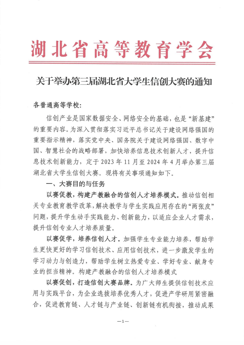 关于举办第三届湖北省大学生信创大赛的通知