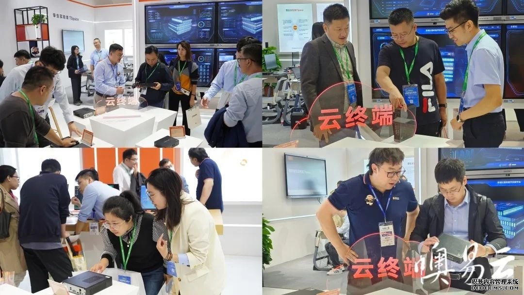 工作人员细致讲解云终端相关产品(图) 噢易云作为 教育桌面云领先品牌,持续赋能高校数字化转型发展,致力于成为全国桌面服务领域的领头羊,帮助客户业务创新发展。目前高教客户覆盖90%以上,超过2000所高校部署噢易桌面云方案,市场占用率68%左右,其中985/211/双一流高校专家客户占比第一,高职“双高校”占比第一。噢易云深耕教育十二载,技术引领启新程,坚持“一朵云,覆盖行业全场景桌面需求”,帮助更多的高校将教学办公电脑上云端,探索教育数字化转型发展美好未来。