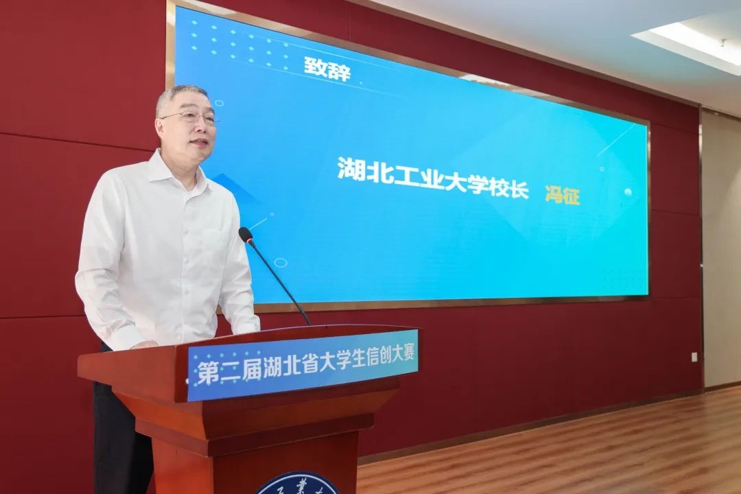 冯征致欢迎辞。他介绍,湖北工业大学高度重视信创专业建设,围绕湖北省大数据、人工智能产业布局,挂牌成立了大数据与人工智能产业学院,学校计算机科学与技术、软件工程两个专业已获批国家一流专业建设点,数据科学与大数据技术专业获批省级一流专业建设点,学生获各类学科竞赛奖项200余项。学校高度重视本次大赛,多次研讨,制定了省赛承办方案,做好赛事服务保障,搭建满足参赛需要的设备与环境,开发湖北省双创网平台,切实保障比赛顺利进行。