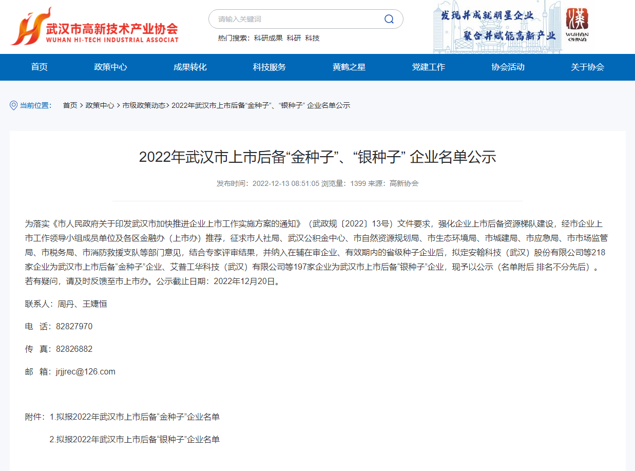 12月13日,武汉市高新技术产业协会正式发布2022年武汉市上市后备“金种子”、“银种子”企业名单公示。武汉噢易云计算股份有限公司作为重点上市后备梯队,凭借“高意愿、快发展、强技术”的企业特性成功入选2022年武汉市上市后备“金种子”企业。