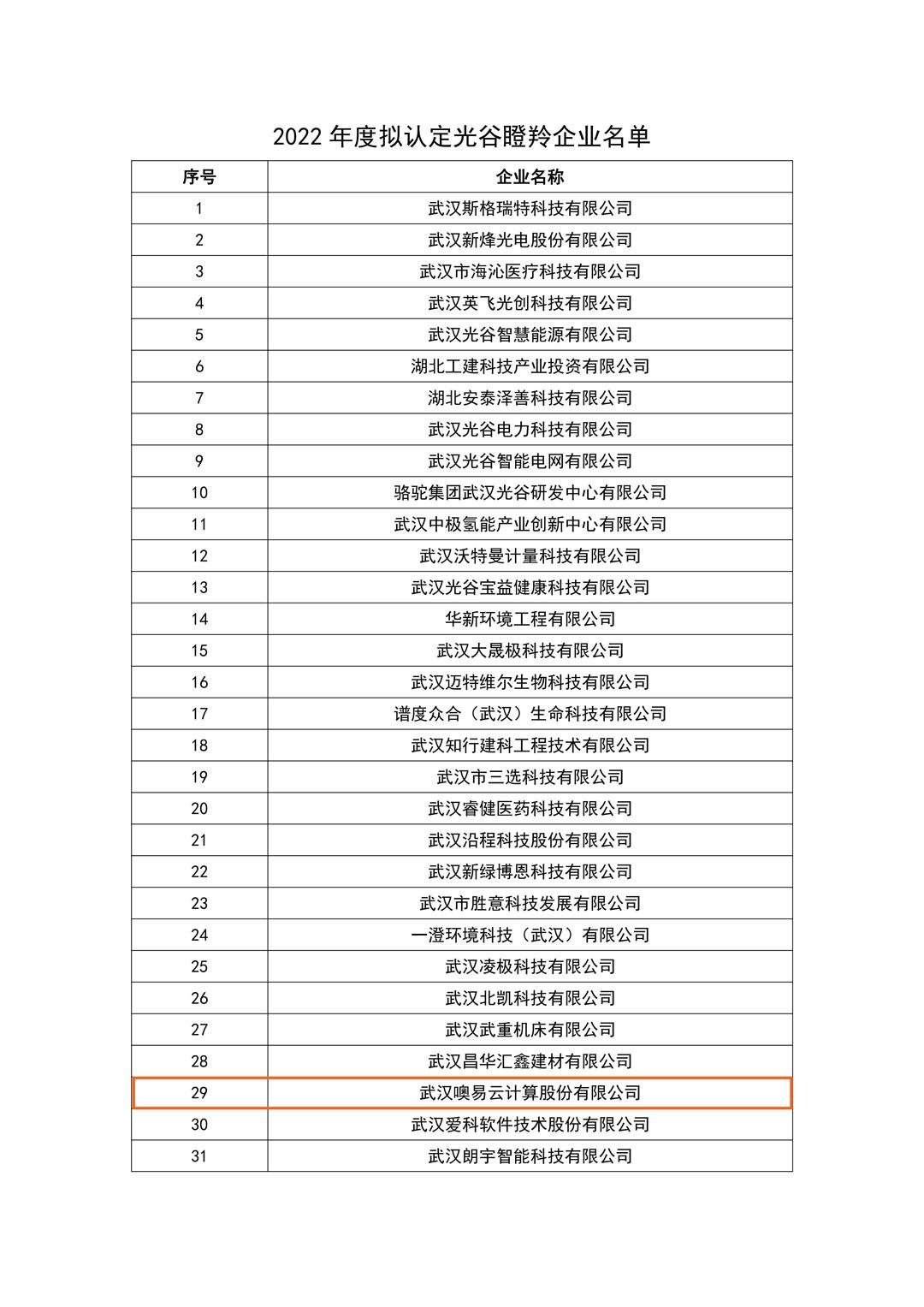 噢易云入选2022年度“光谷瞪羚”企业名单部分