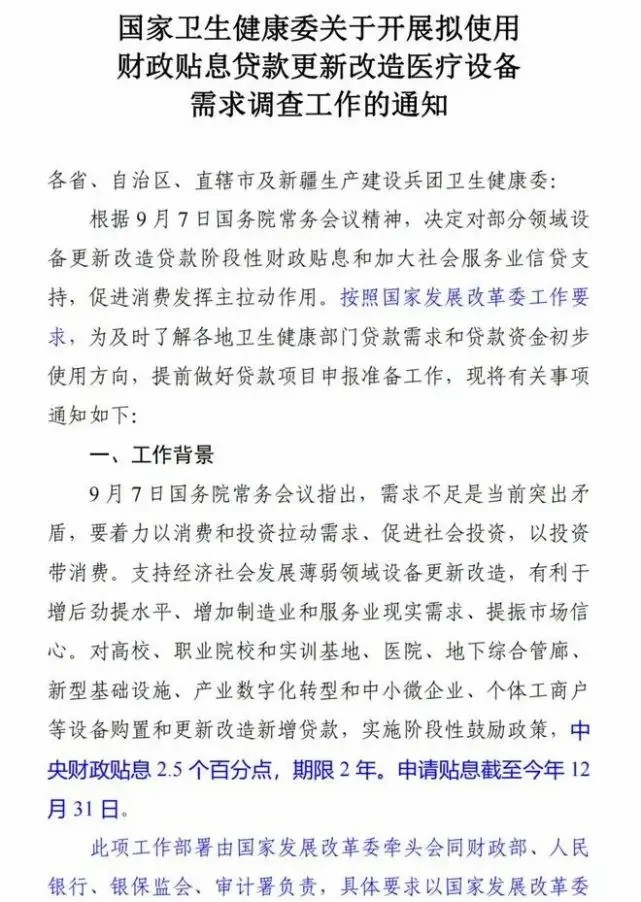 国家卫健委关于贴息贷款政策通知