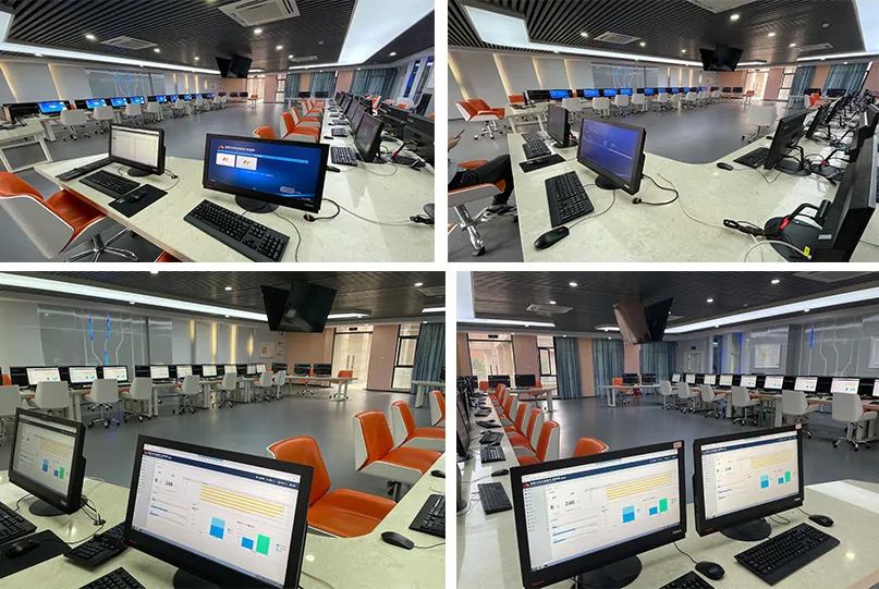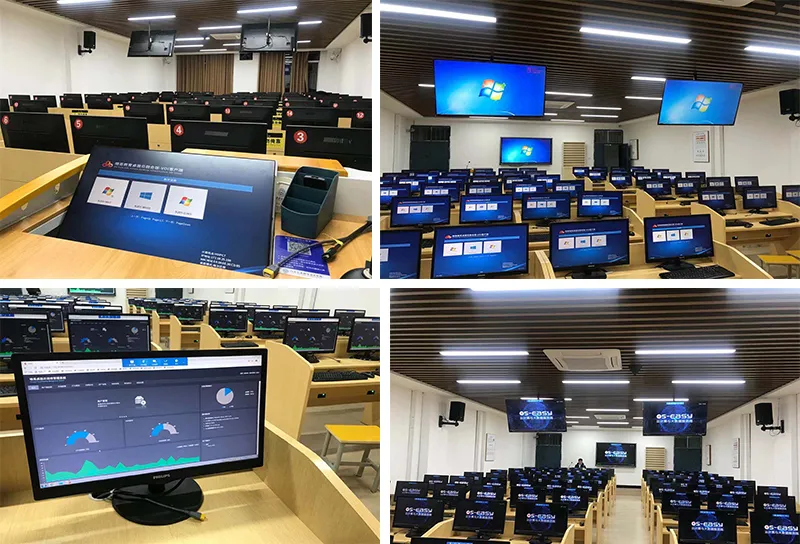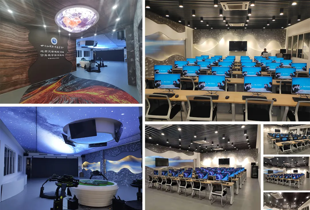 噢易云为地质灾害避险演练仿真教学实训基地定制了软硬件兼容及操作体验性媲美PC并且更安全、更高效的全场景软硬件一体化解决方案,将实训基地从传统PC模式建设提升成为新型的桌面云模式;基地采用噢易云一体机,显示器终端一体化,简洁美观。