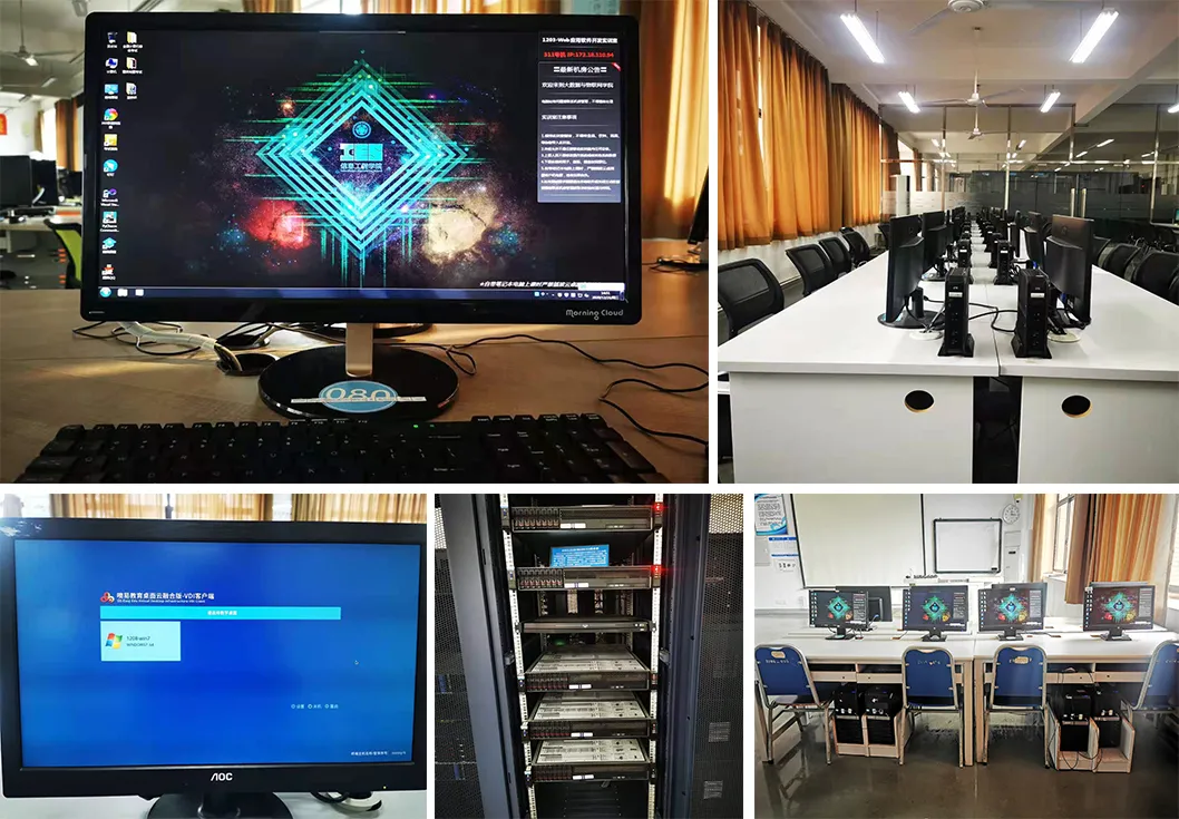 新建成的实训中心能够确保断网或服务器宕机时桌面不受影响;流畅运行各种类型的专业软件,premiere/cdr/3D/CAD都不会卡机;提供和传统PC一致的外设兼容性;充分利旧,各类配置的异构终端统一上云,保护了校方前期投资。