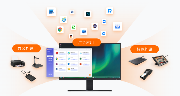 兼容各类基础应用和行业业务应用,兼容移动存储设备、打印机、数字证书等各类外设的接入使用