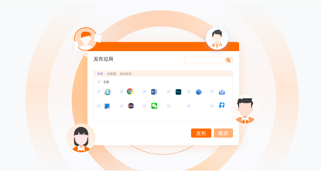 通过管理平台实现对所有应用的集中审查、分类、安装和配置,通过云应用模板按部门、角色批量快速发布应用,实现应用统一部署与更新