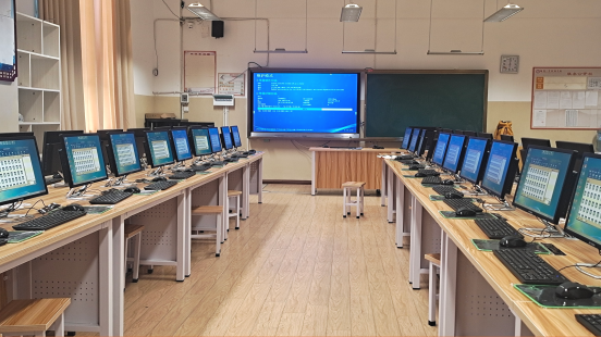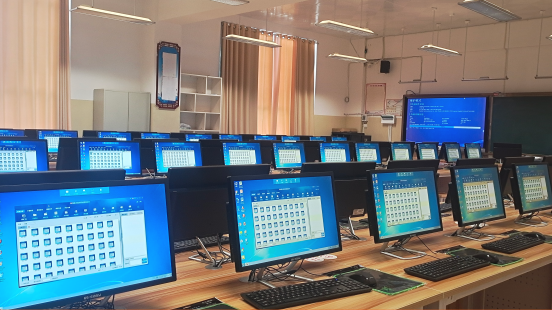 机房内配备多媒体广播教学软件,实现屏幕广播、视频广播、文件传输、电子点名等教学互动,还可通过黑屏肃静、断网锁屏、屏幕监看等功能远程监控学生的桌面行为,约束违规行为发生。