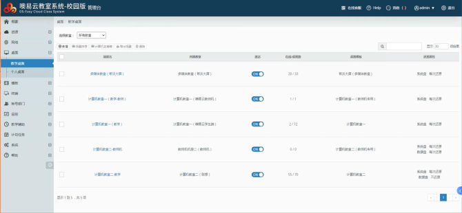 基于WEB的图形化集中管理平台,用户可以在任意联网的终端设备上访问管理平台,对计算机微机室、多媒体教室、教师办公的33台希沃可触控一体机、244台异构PC实现统一远程管理。