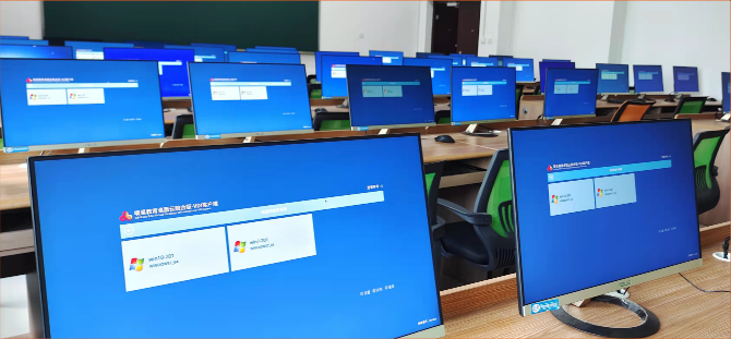为提高教学服务能力,加速课程教学信息化建设,重庆师范大学携手噢易云共部署1383点融合桌面云,分布在计算机与信息科学学院、经济与管理学院、教务处的10间公共机房和9间专业机房,承载全校三万学生计算机课程及大型考试,满足经济与管理学院、计算机与信息科学学院的专业实训需求。