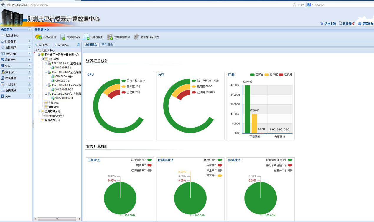 为响应国家号召以及解决当前单位业务中的困难点,荆州市卫计委决定建设统一、标准的云数据中心,通过云计算、虚拟化等技术改造原有信息中心机房,加速信心化建设步伐。