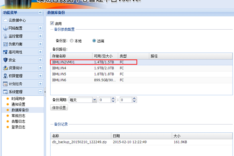 管理平台数据库备份设置