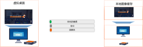 当我们在使用虚拟桌面时,OEIDP桌面传输协议会智能分析虚拟桌面显示的图像内容,将图像拆解为分散的元素存储在云终端本地,并会将过去一段时间的相同元素缓存在终端本地的公共库中,当你进行下一个操作时,下一帧图像会优先从本地的公共库中拉取相同元素,本地元素未命中才会从云端拉取新元素,然后将本地缓存图像与云端图像进行合成显示,从而降低每一帧需要传输的画面数据,提高画面流畅度。