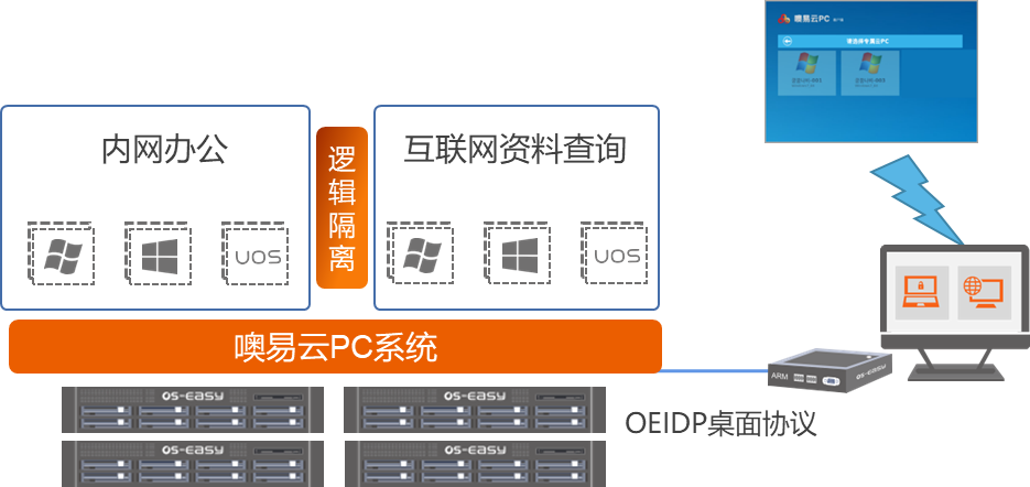 无论架构选择瘦终端、胖终端方案,还是PC电脑方案都可以进行内外网改造