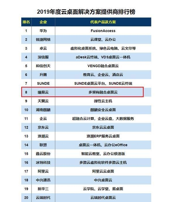 2019《互联网周刊》&eNet研究院的桌面云排行中,噢易云排名第8。