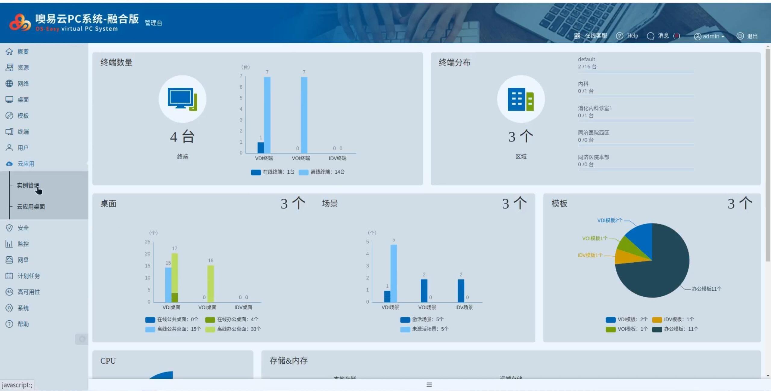 噢易云PC系统通过单一的Web管理页面,实现办公室、设备、桌面的统一管理和集中运维,帮助运维人员足不出户进行远程协助,实现分钟级的故障解决效率。同时提供桌面云系统检测工具,可检测平台服务器、终端连接状态、集群网络状态等情况,并生成检测报告,一键恢复故障问题,确保系统最佳状态。