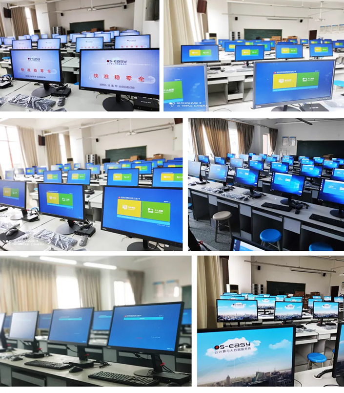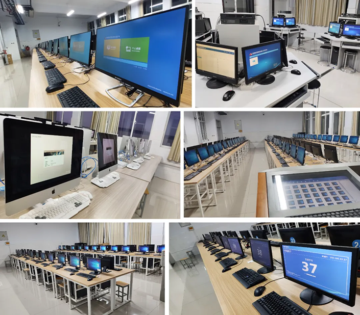 成都信息工程大学信息中心多媒体教室部署了260点,资源环境学80点,电子工程学院50点,共计390点噢易教育桌面云-融合版项目共涉及13种不同型号批次旧PC的统一接入和管理,极大的减少了学校多媒体教室的平均故障恢复时间。