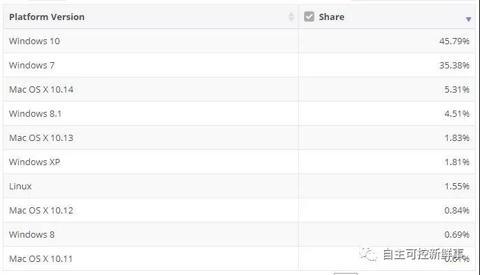 目前,国内做国产操作系统的厂商不可谓不多,但是与占据绝大数江山的Windows相比,显得尤为微弱。据NetMarketShare2019年7月公布的全球桌面操作系统的市场份额情况,Windows 10的市场占有率为45.79%,Windows 7市场占有率为35.38%;Mac OS X 10.14市场份额5.31%;Windows XP的市场份额1.81%;而Linux系统的市场份额却只有1.55%,甚至低于Windows XP。